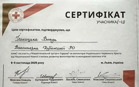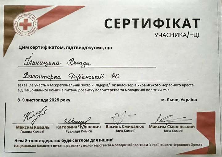 Здобувач освіти 1 курсу спеціальності J1 Послуги краси Владислава ІЛЬНИЦЬКА - волонтерка Дубенської організації Товариства Червоного Хреста України взяла участь у Міжрегіональній зустрічі лідерів волонтерів Українського Червоного Хреста, що відбулася у місті Львів.